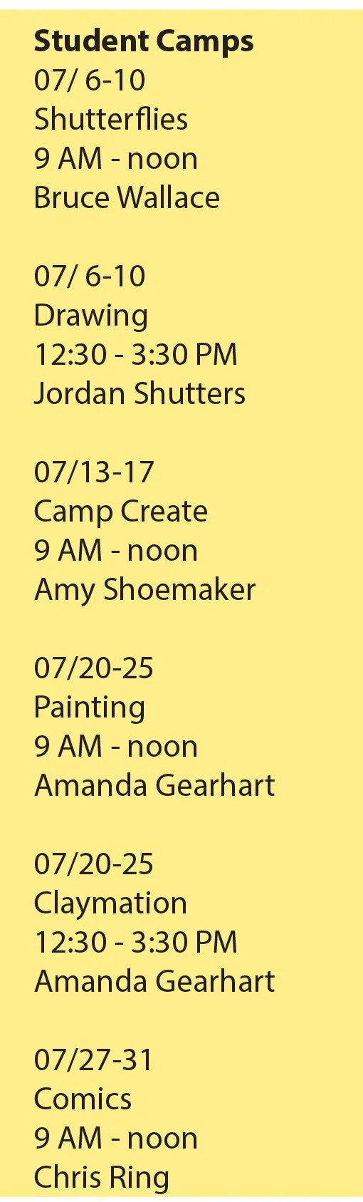 Coming up again THIS summer! Thanks for supporting the arts and developing creativity in our young people. We are planning to have our Shutterlfies digital photo camp, Camp Create art, and new this year, Comic strip art creation, among others.